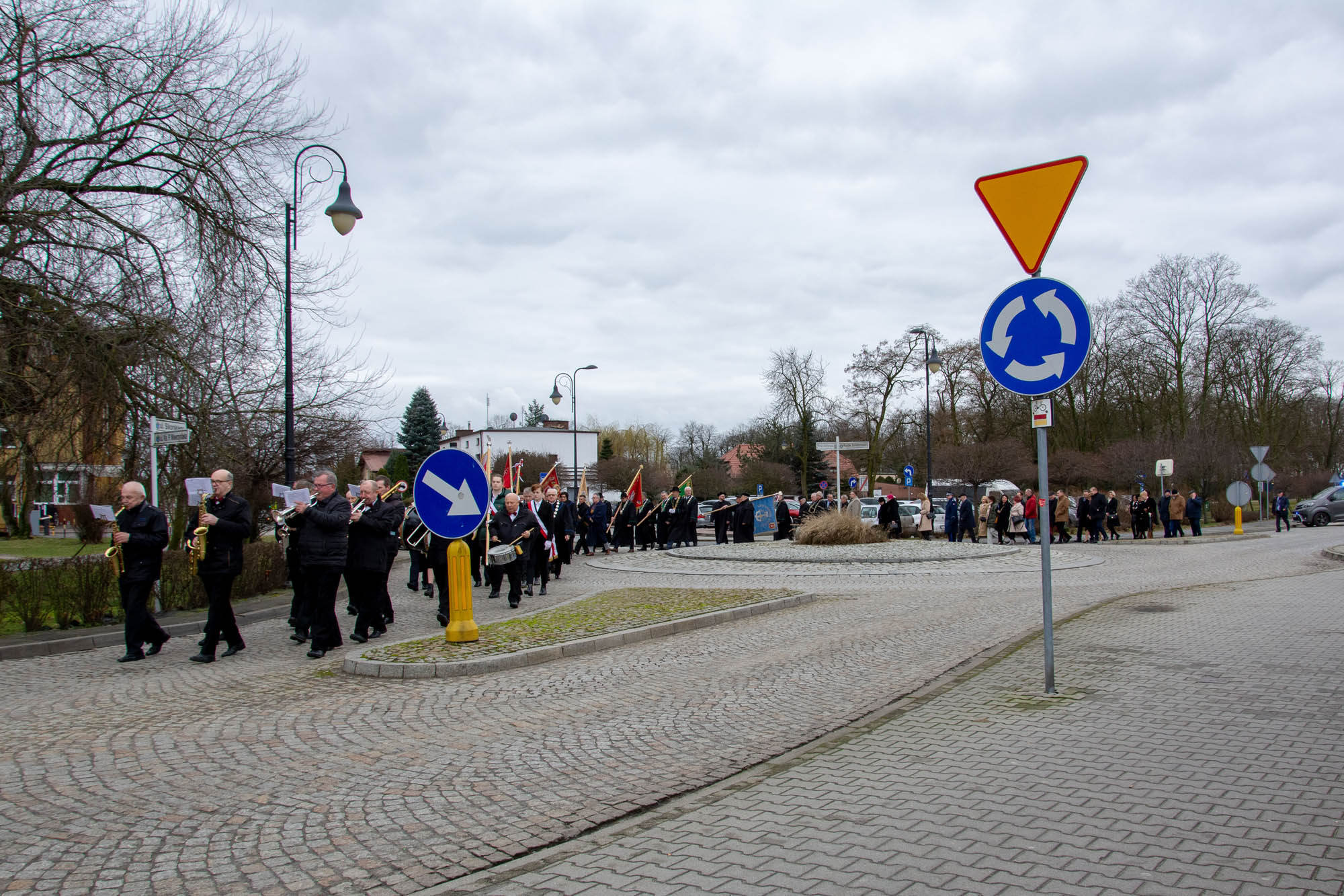 Kępnie. Po nabożeństwie ponownie poczty sztandarowe i goście w